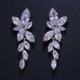 LXOEN Marquise Cut Flower Zirconia Crystal Long Drop Earrings for Women Shiny Leaf CZ Stone Bridal Wedding Jewelry