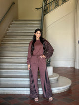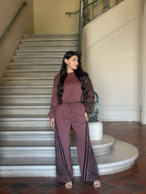 Leopard Print & Solid Stripes Contrast Loungewear
