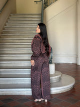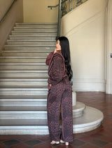 Stand out in this leopard print and solid stripes contrast loungewear set, blending comfort with eye-catching detail. The cropped top pairs effortlessly with wide leg drawstring pants for a relaxed yet stylish look. Made from a soft cotton-polyester blend, it offers stretch and breathability for all-day wear. Perfect for lounging, casual outings, or adding a playful twist to your everyday wardrobe.