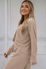 Embrace comfort and style with this Loose Textured Pullover and Pants Outfit. The relaxed fit and textured fabric make it perfect for lounging or running errands. The pullover features a loose, oversized fit and a textured knit design. The pants have an elastic waistband for a comfy fit, and the loose straight-leg silhouette is perfect for a casual and laid-back look