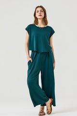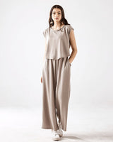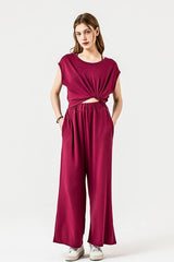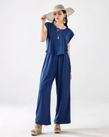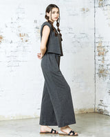 The open front allows you to wear it as is or twist and tie for a chic, customized look. Its wide-leg silhouette ensures freedom of movement while creating a polished, versatile outfit perfect for casual or dressy occasions.