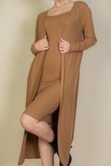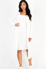 Ribbed Cardigan & Cami Midi Bodycon Dress