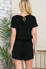 Step out in comfort and style with the Romper with Side Pockets, featuring a soft stretch knit and a relaxed silhouette. Designed with a folded drop shoulder and elastic cinched waist, this romper ensures ease of movement while maintaining a flattering shape. Side pockets add practicality without sacrificing style, making it a perfect choice for casual outings.