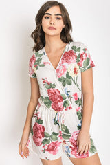 Surplice Drawstring Floral Romper