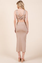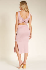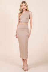 Elevate your casual wardrobe with the Twist Back Heavy Ribbed Skirt Set, a chic and comfortable two-piece outfit designed to turn heads. The high-waisted skirt with a stylish side slit pairs perfectly with the coordinating top, offering a flattering and effortless silhouette. Crafted from a soft, stretchy ribbed fabric, this set provides all-day comfort while keeping a polished look for daily wear or casual outings.