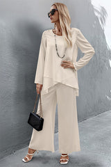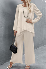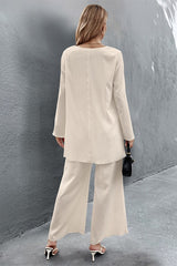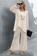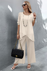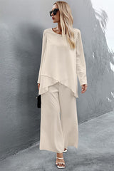 Two Pieces Round Neck Asymmetry Hem Wide Leg Set