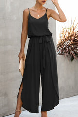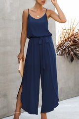 V Neck Suspenders Wide Leg Side Slit Jumpsuit