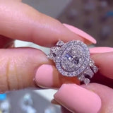Huitan 2Pcs/Set Wedding Rings for Women Luxury Full Cubic Zirconia Marriage Engagement Rings Silver Color New Fashion Jewelry
