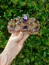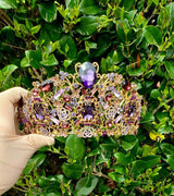 Lovely purple large baroque tiara wedding crown made of high quality alloy and rhinestone materials, gives it diamond look and hard texture, durable and comfortable to wear, the body of the tiara is sturdy and flexible.
