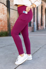 Meet your new favorite pair — The Maria Maroon Full Length Leggings with Pockets, designed to keep up with your every move while keeping you effortlessly stylish. With their rich maroon tone and flattering high-waisted silhouette, these leggings bring a pop of color and confidence to your daily rotation. Whether you’re running errands, relaxing at home, or heading to the gym, these leggings deliver the perfect mix of comfort, support, and practicality.